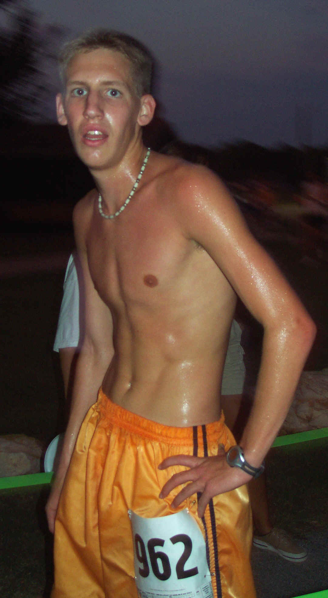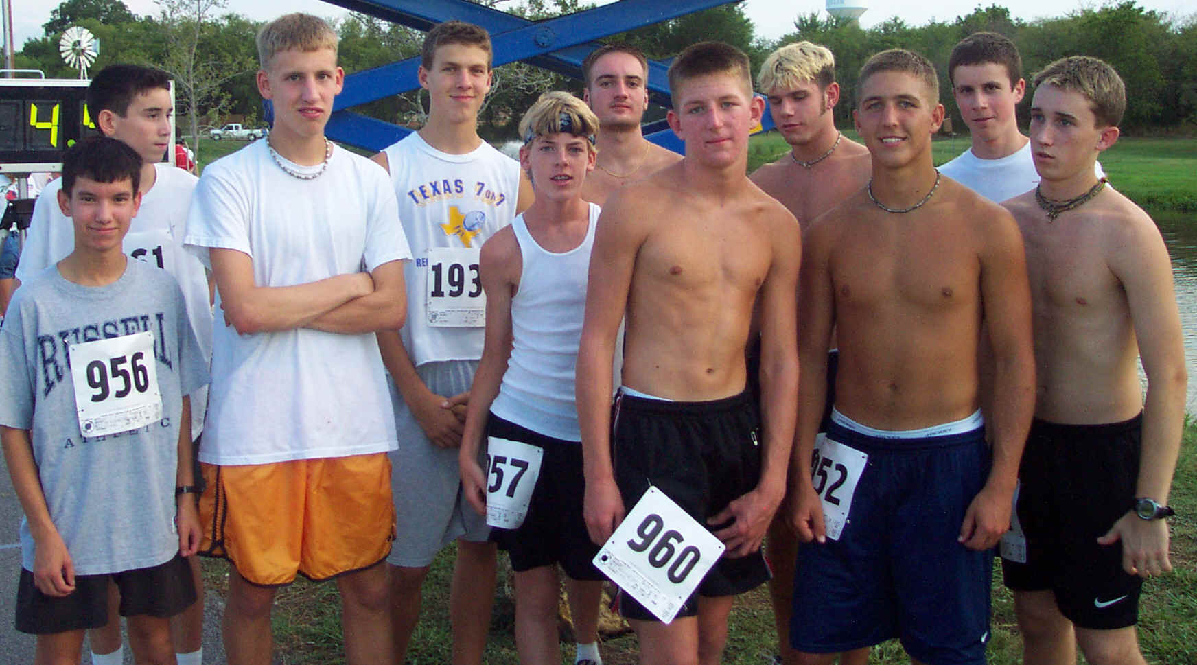 James Courson (senior) was the 8th fastest overall; 3rd fastest male from 15-19 years old. . . Kevin Ondrasek (freshman) checks his time after a great run: he won the 2nd place trophy for males aged 10-14.