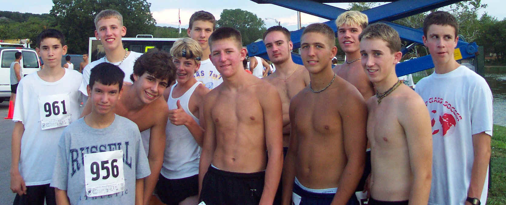 Left to right: freshman boy, "Tiny" Andrew Coons (10), James Courson (12) - the guy who looks like a goofball with big lips LOL, Micheal Hanson (11), Jeremy Neisen (11), senoir kid, Dave Clark (10), Matt Trent (12), Eric Anderson (11), Scott Smetco (12), Scottie Cornman (12).