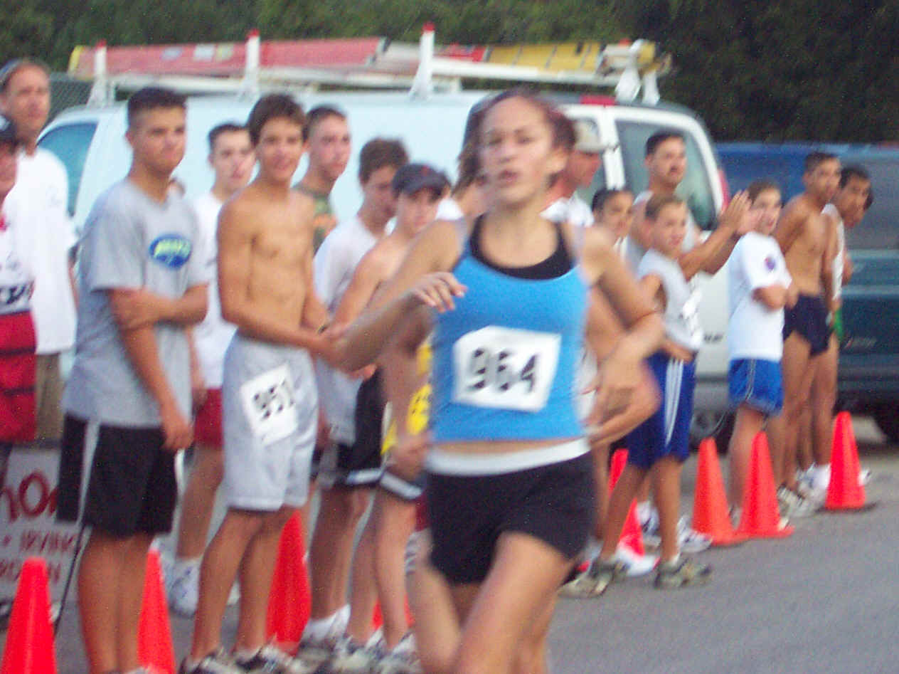 Cassie Pearson (11) flew across the 1-mile finish line, and Kirsten Moran (freshman / 9 ) was close behind.